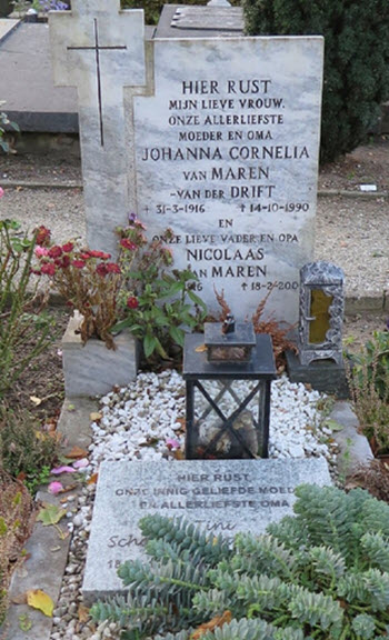 Het graf van de ouders van Tiny op het Johannes de Doperkerkhof te Katwijk aan den Rijn waarin zij is bijgezet,